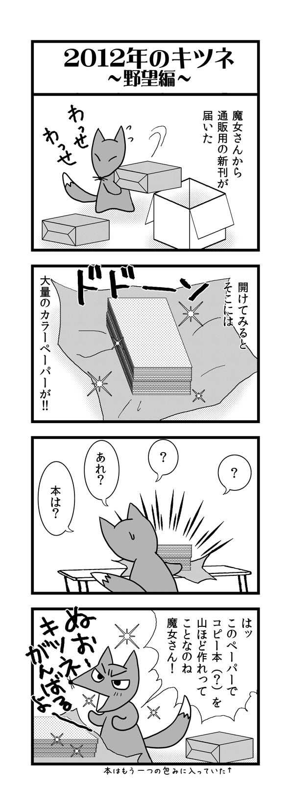 | えーと、これはつまりですね……イベントでは面白いMMHペーパーを作ろうね、ってことです。もちろん、キツネさんの新刊もネッ! | |